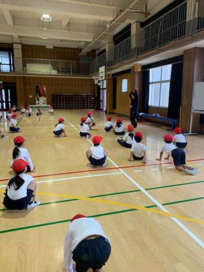 マットではゆりかごをしたり、コロコロ転がったり、色々な動きをしました。45分で色々な体の動かし方を勉強することができました。