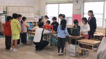 たてわり班で、6年生がリーダーシップをとりながら、活動を行いました。1年生にとっては、始めは緊張している様子でしたが、次第に慣れていき、一人でルール説明を行ったり、大きな声でお店の宣伝をしたりする姿が見られました。リーダーの指示に従いながら進んで活動を行い、どの班も素敵なお店になりました。