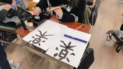 子どもたちそれぞれの思いがつまった一文字です。階段や各教室に掲示しています。ぜひ、個人懇談会に来られた際にご覧ください。