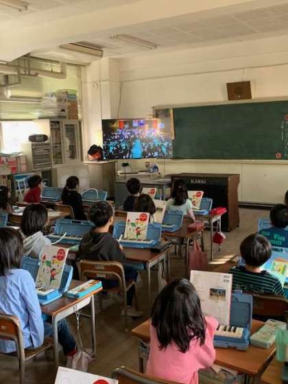 1年生は音楽科の学習で「きらきらぼし変奏曲」を学習しました。学習をする前に、昨年の4月に行われた入学式のビデオをみんなで見ました。