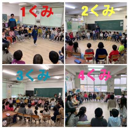 今日の業間の時間に1年生全体できらきらタイムを行いました。各クラスでくじ引きを行い、行くクラスを決めました。違うクラスの子どもたちとの交流を見ていて、緊張している子もいれば、楽しい様子で遊んでいる子もいました。2年生になると、クラス替えがあるので、これを機会に色々な友だちと関わってほしいです。
