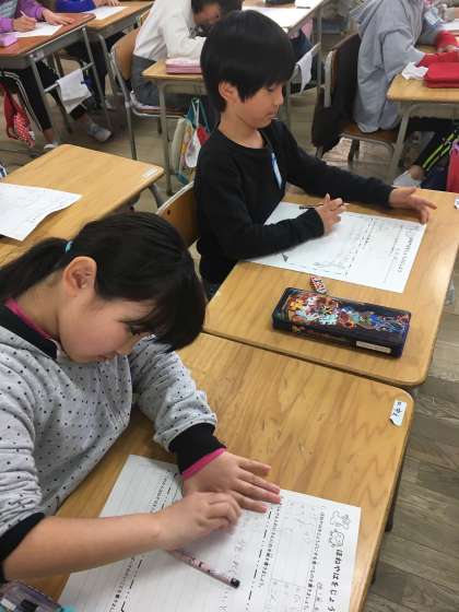 栄養教諭の「ほねやはをじょうぶにしよう」の学習がありました。きりんさんとわにさんのペープサートを見て「きりんさんわにさん、好き嫌いはダメだよ。」や「甘い物を食べ過ぎると歯が弱くなるよ。」など骨や歯の大切さを見直し、どうしたら丈夫に出来るか一生懸命考えました。学習した事を忘れずに日頃の食事を大切にしてほしいと思います。