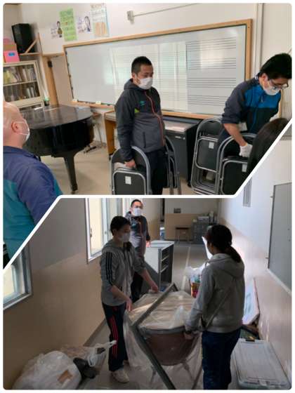 3/2(月)、コロナウィルス感染症による臨時休業のため、予定していた日を変更して金管バンドの部室の引越しを職員でしました。