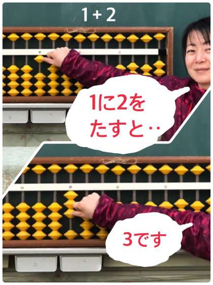 1+2は、1をまず入れて、一だまを2つ入れます。