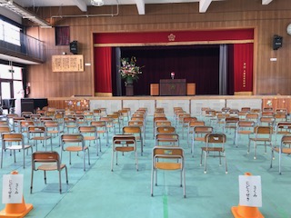 このたびはお子様のご入学、おめでとうございます。コロナウイルス感染対策により、入学式が延期になってしまったことはとても残念に思います。三国小学校としては密集を防ぐために、事前に配付物を保護者席に置いておいたり、立て看板を5つ用意したりして準備を進めていましたが、とても残念に思います。しかし、子どもたちの命を守るために、また後日入学式ができるようになることを願い、準備を進めておこうと思います。