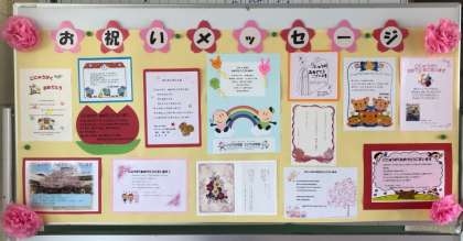 今日までにお祝いメッセージもたくさんいただいていました。お心遣い、ありがとうございます。また子どもたちが学校に安心して楽しく来れる日が早く来ることを願っております。