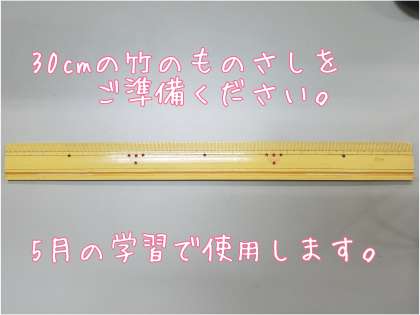 算数科の5月の学習で使用する「竹のものさし」をご準備ください。