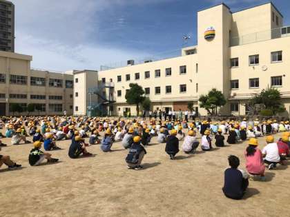 感染拡大防止の観点から、屋外で行うとともに、子どもたちは間隔を広く取って参加しました。