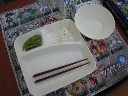 この日の献立は、ごはん、牛乳、チンジャオニューロウスー、ハムと野菜の中華スープ、えだまめでした。