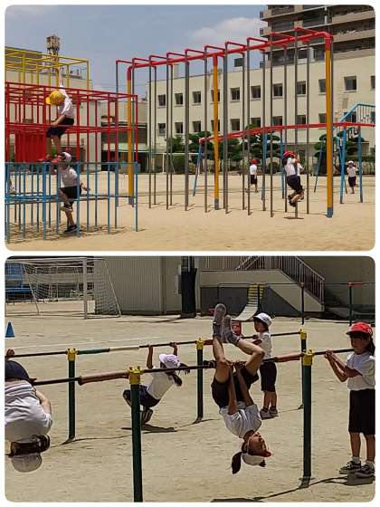 7/14(火) 2年 固定遊具や鉄棒を使った体育