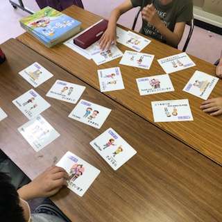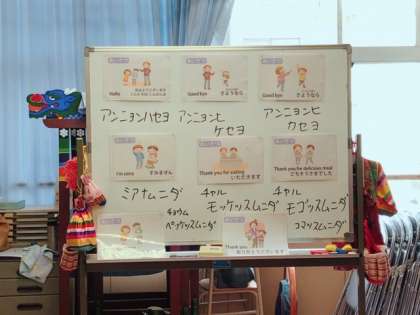 今日は、ハングルのあいさつカードを使って、学習を進めました。