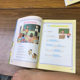 その後は、テキストを使って、自己紹介の練習をしました。好きなスポーツ、好きな教科を自分で考えて発表しました。 算数は、산수(サンス)です。日本語とよく似ていますね。