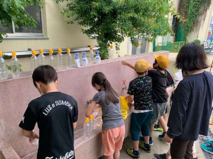1年生のあさがおの植木鉢が雨風で倒れてしまいました。放課後に先生たちで片付けようと思って、外に出てみると、4年生の子どもたちが倒れている植木鉢を起こし、散らばったペットボトルなどを洗って、もとの場所に戻してくれていました。4年生の子どもたちに話を聞くと「倒れていたから、自分たちで片付けようって話になった!」と言っていました。
