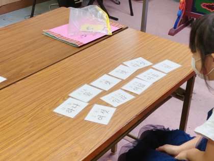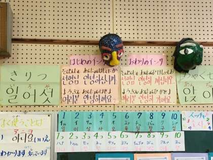 数の学習をしました。日本語で「1、2、3、4(いち、に、さん、し)」や「1つ、2つ、3つ、4つ(ひとつ、ふたつ、みっつ、よっつ)」と数え方があるように、朝鮮や韓国語でも2通りの数え方があります。
