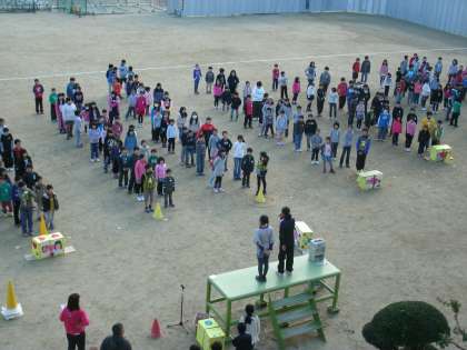 12月6日(土)、1時間目に児童会行事「たてわりフェスティバル」が行われました。毎週水曜日のたてわり集会のロングバージョンです。「おみこしわっしょいリレー」「三国○×クイズ」「ダンシングジャンケン」など、運営委員会が考えたゲームで盛り上がりました。この日はすごく気温が低い日でしたが、寒さを吹き飛ばすほど熱気と笑顔があふれる1日となりました。