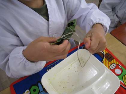 2年生も、ちまきの葉っぱを上手に片づけていました。