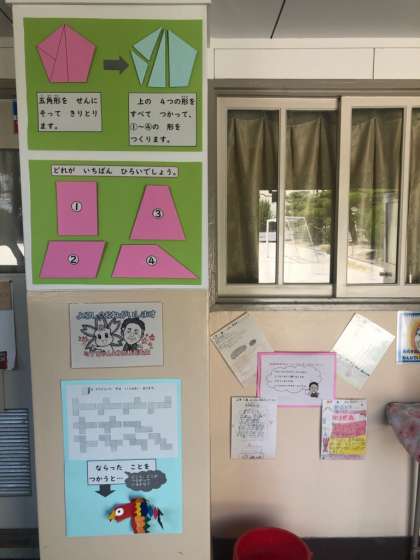 校長先生のお話では、1学期終業式でお話しされた算数科図形の不思議について、学校だより8月号で出題した問題の答え合わせがされました。