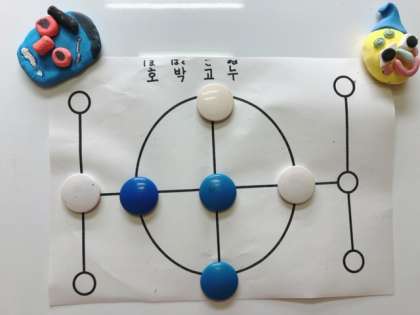 その後に、ホバッコヌという陣取りゲームをしました。相手が駒を動かせなくなったら勝ちです。とても盛り上がって何度も勝負しました。