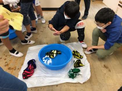 暑い季節の過ごし方の学習で、涼しい衣服の着方を学んだあと、洗濯についての学習もしました。