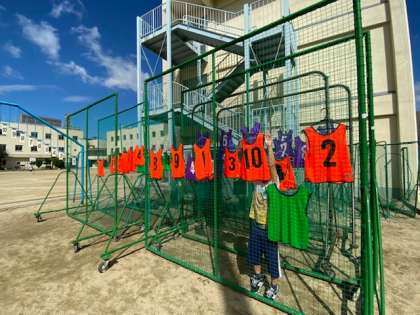 学校のみんなのために、体育のビブスを洗いましたが、見えない汚れも取れ、いいにおいになり、体育倉庫へ片づけました。