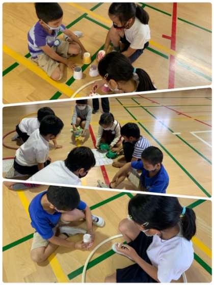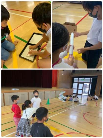 2年生の児童が作ったおもちゃで遊びました!1年生の児童はとても楽しい様子でおもちゃで遊んでいました。2年生のお礼の手紙の中には「またしたいです」や「ぜんぶのおもちゃで遊べてとても楽しかったです」という感想がありました。