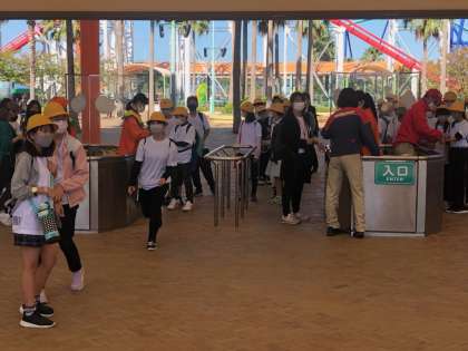 ナガシマスパーランド前で学級ごとに記念撮影をしました。いよいよ今から活動班での自由行動となります。楽しい思い出を作ってきてほしいなあと思います。