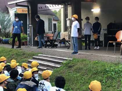 開舎式では、児童代表が「宿舎に泊まることや食事をすることが楽しみです。迷惑をかけないように過ごしますのでよろしくお願いします」と話しました。その後、宿舎の方からこの後の流れをお話しいただきました。子どもたちはワクワクしながら真剣に話を聞いていました。