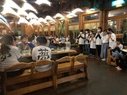 用意してくださった方々に感謝の気持ちを込めてこごちそうさまでした。その後、同じ食器を重ねて片付けました。こういった心遣いが素晴らしいですね。