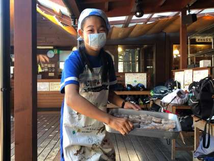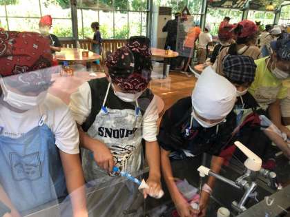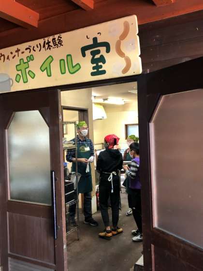 ソーセージを作り終わったら片付けです。器具や調理用具を片付けるとともに、仕上がった班からソーセージは「ボイル室」へ運びます。約10分ほどボイルし、その後氷水で10分ほど冷やしたら完成です!