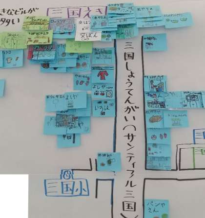 今は、みんなが知っている店や施設について思い出し、それを大きな地図にまとめています。