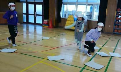 合図とともに、枠の中にある段ボールを目指してまっしぐらに走り、自分のチームの色にひっくり返していきました。 相手チームの動きを見て駆け引きしながら、みんな夢中になって次々にカードを裏返します。制限時間が経ち、カードの数をグループで声を合わせて数えていきました。勝ったチームは大盛り上がりでした!