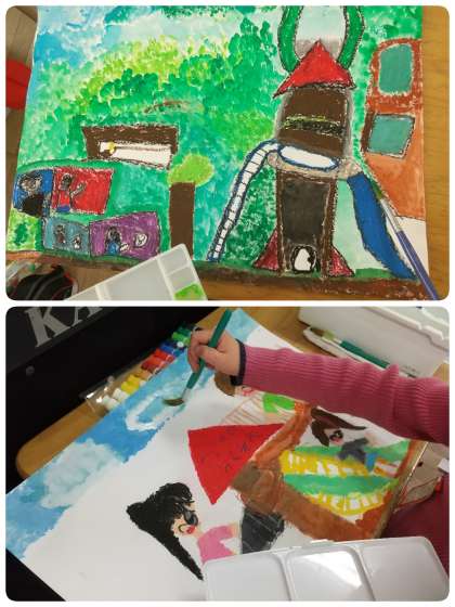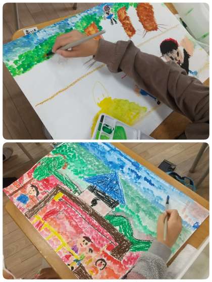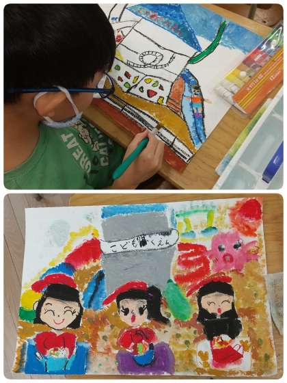 校外活動に行ったことを中心に、楽しかった思い出を絵に描きました。