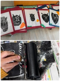 12月の玄関掲示は、子ども達が作った靴下の飾りです。