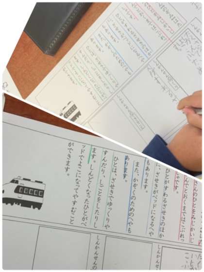 1年生の国語科の学習では「いろいろな ふね」の学習をしています。乗り物カードを作成するために『読み手』を意識しながら、わかりやすい文の書き方を学習しています。また、どんな順番で説明しているかも学習をしました。今日は「しんかんせん」の役目・つくり・できることを読み取り、ワークシートに書く活動をしました。児童は文章に線を引いたり、学習した文の書き方で文章を書いていました。