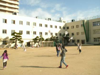 1月末から2月初めにかけて、1年生がたこあげをしています。自分で絵をかいたり足をつけたりしてつくった「ぐにゃぐにゃだこ」です。子どもたちは、たこが上がるように思いっきり走ります。うまく風にのって高く上がると「うわぁ」と歓声が上がります。青空に舞うたこを見上げる子どもたちの目はキラキラと輝いています。その輝く目をいつまでも大切にしてほしいと思います。