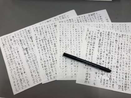卒業文集の清書が終わりました。構成を考え、下書きをして、丁寧な字で清書をしました。マジックで書いていくため、間違えると何枚も書き直す児童も見られました。しかし、最後まで、粘り強く取り組んで仕上げることができました。