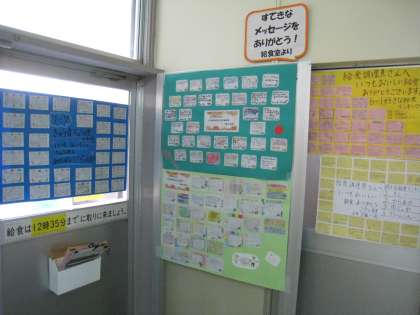 各学級では、調理員さんへのメッセージカードを作りました。好きな給食ランキングをのせている学級もあり、調理員さんたちも楽しくメッセージカードを読んでいました。