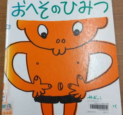 絵本「おへそのひみつ」を読んで、生まれるまで、おへそがお母さんとつながっていたことを知り、驚いたり、おへそを確認したりしていました。