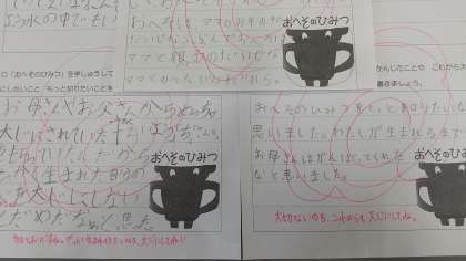 真剣な表情で読み聞かせを聞き、お母さんのおなかの中で大切に育ててもらったことに感謝の気持ちをもつことができた学習でした。
