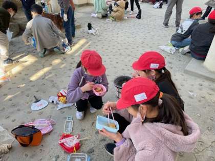 七輪を使って、お餅を焼きました。火起こしでは、なかなか火が大きくならず、一生懸命、子どもたちは火種をうちわであおいでいました。 餅焼きでは、火の調節に苦労しながらも、友だちと協力して、焼き上げていました。「友だちと一緒に食べるお餅はおいしい」と笑顔でお餅を食べていました。