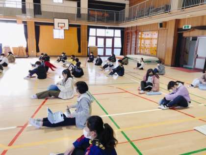 学年で、合奏「情熱大陸」を練習しています。102人がそれぞれの楽器パートに分かれて、ひとつの曲になるよう心を込めて演奏しています。
