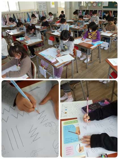 鉛筆の正しい持ち方、書く時の姿勢などを学習しました。