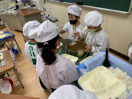 今日は、給食でじゃこピーマンがでました。苦手だと言っている子もいました。しかし、食べ始めると、「おいしい」とおかわりする子も多く、残さずたくさん食べることができました。
