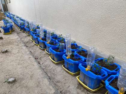 同じ鉢植えを使って、2年生ではミニトマトを育てます。