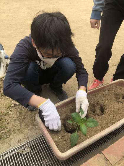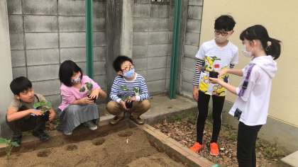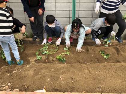苗植えをする時に、植え方のコツを率先して子どもたち同士で教え合っている姿があり、とても楽しかったです。