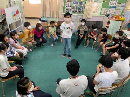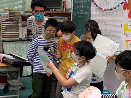 4・5月のお誕生日会をしました。司会の4人は、事前にせりふの練習に取り組んだことで、堂々と司会進行をしてくれました。また、折り紙で作った輪っかも、子どもたちが協力してきれいに飾りつけをしてくれました。次に、みんなでハッピーバースデーの歌を歌い、誕生日カードを一人ずつに渡しました。カードのお祝いメッセージの中に、友だちから見た「○○さんの良いところ」も書かれていて、書いた子どもたちがみんなの前で発表しました。とても嬉しそうに受け取っていました。