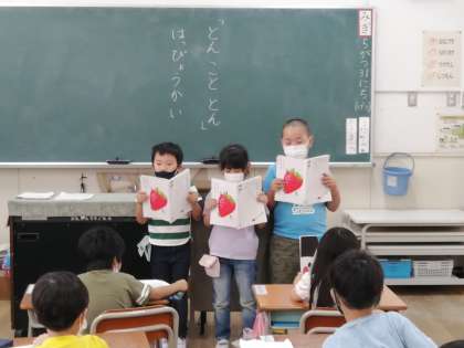 発表会では、緊張している様子でしたが、声の大きさや速さに気をつけて読むことができました。次の学習にも活かしてほしいと思います。