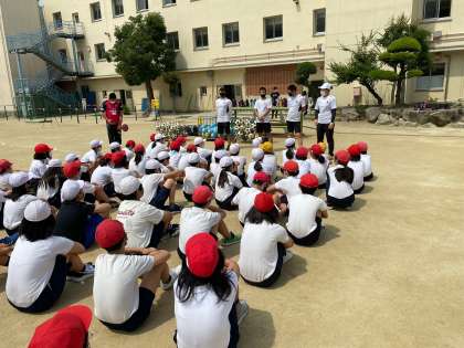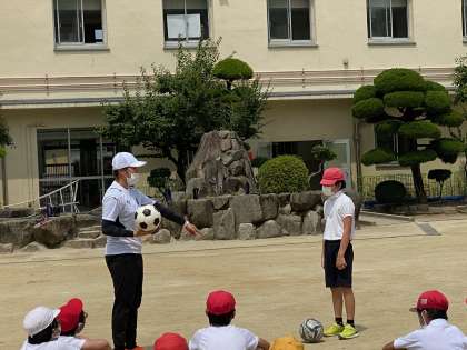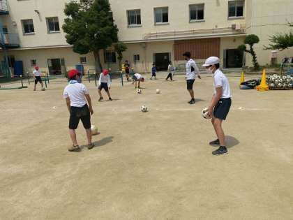 6月8日(火)2・3時間目、セレッソ大阪の方々にお越しいただき、サッカーの授業をしていただきました。最初にサッカーの動作を用いた準備運動をし、ドリブルやパスなどが上達するための練習をしました。