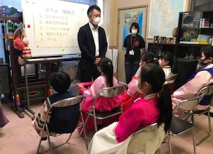 開級式ではチマ・チョゴリ、パジ・チョゴリを着て、頑張りたいことを発表しました。