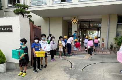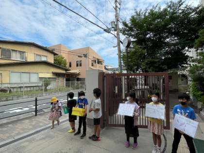 4年生の運営委員会の子どもたちが募金箱を抱えながら、元気にあいさつをしていました。募金が入れられると「ありがとうございました。」と協力への感謝を伝えていました。